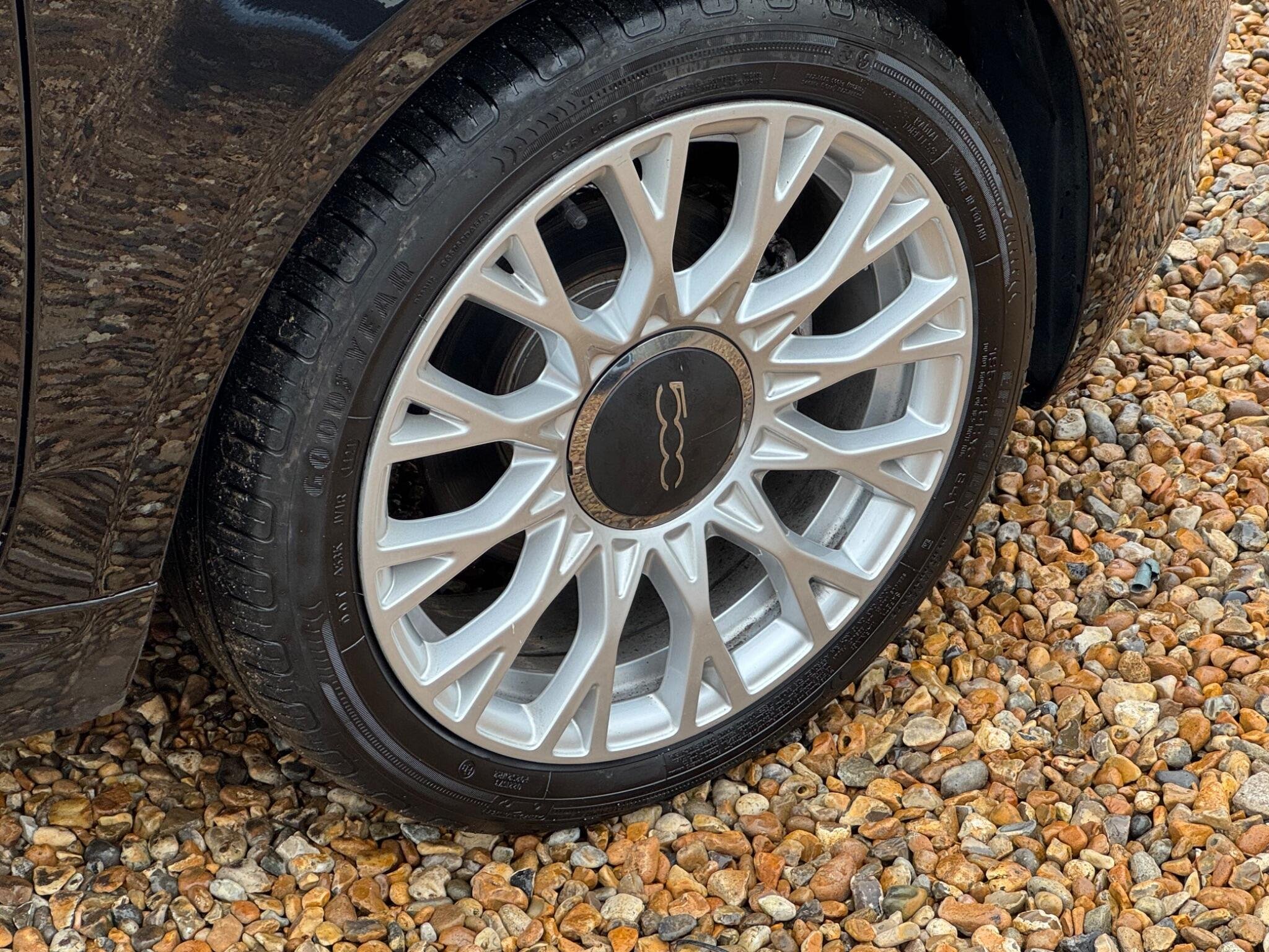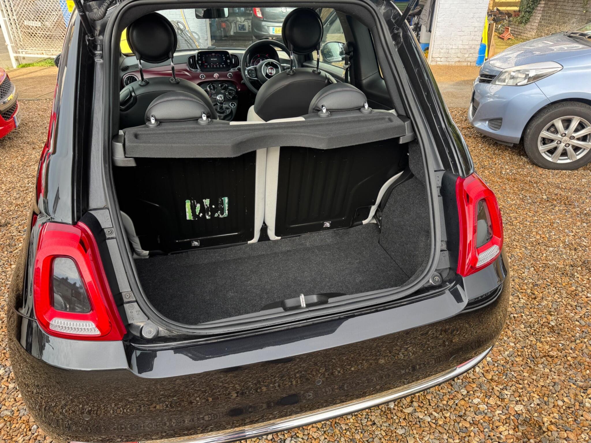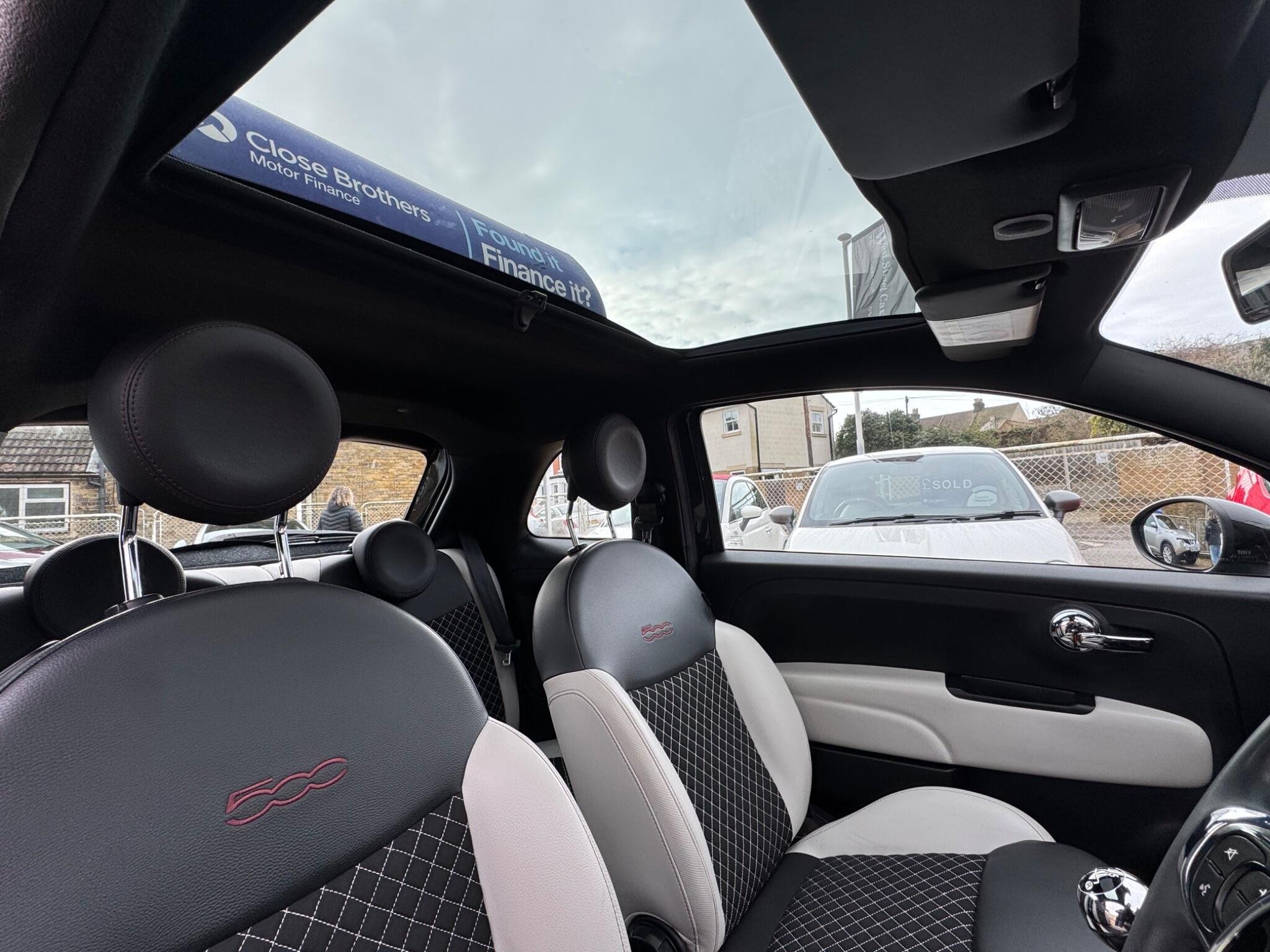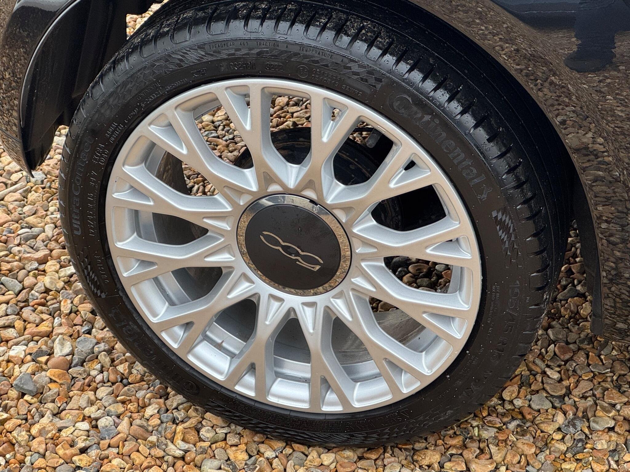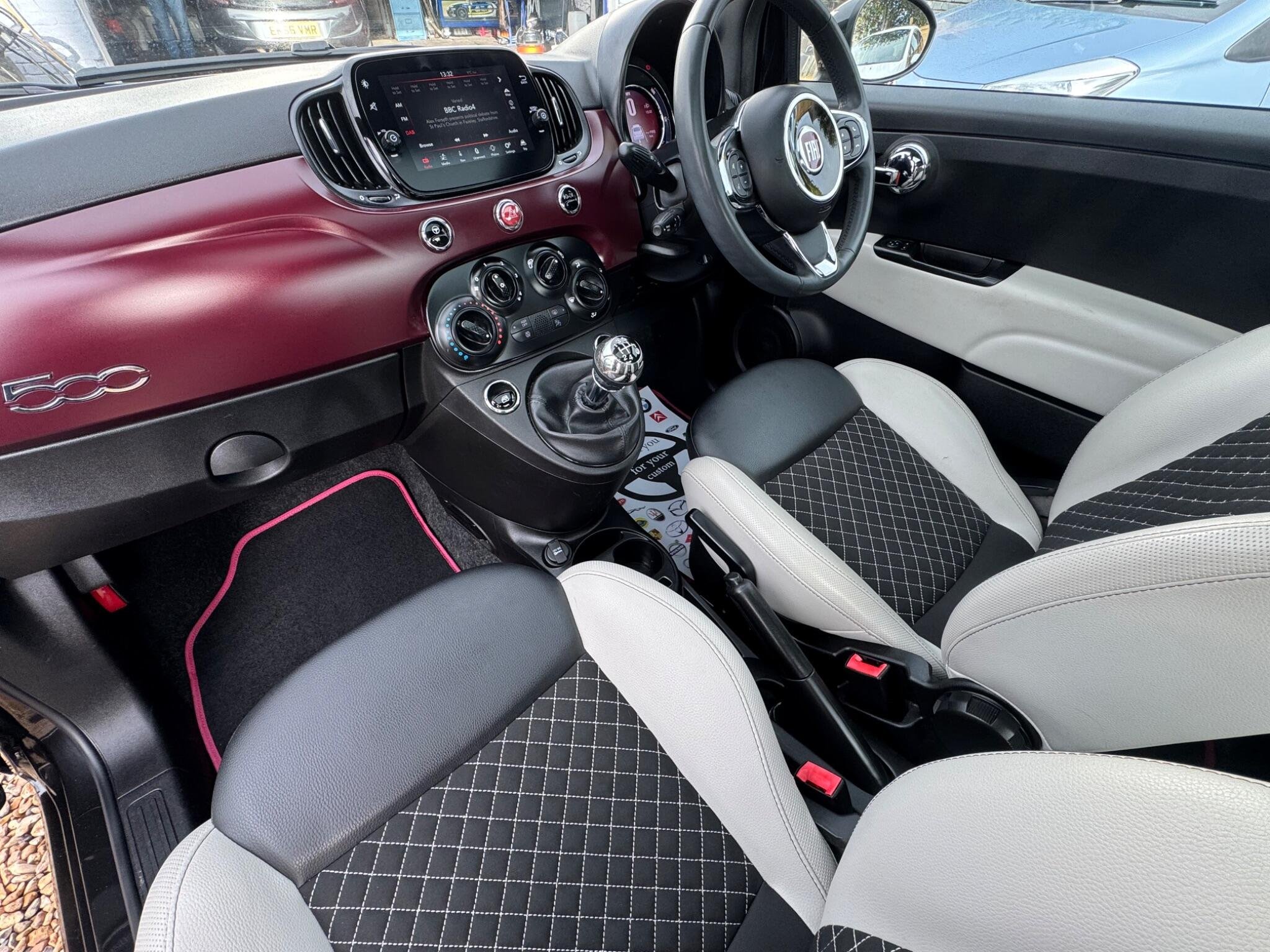 Euro 6 compliant 1.2 litre petrol engine, ensuring it meets current emission standards. Inside, you'll find a sophisticated Black Ivory leather interior with an Ivory ambience, complemented by a leather gear knob. The Star trim also includes a Style Pack, enhancing its already appealing design. For convenience, this Fiat 500 is equipped with rain and dusk sensors that automatically activate the headlights, and seamless connectivity through Apple CarPlay and Android Auto.