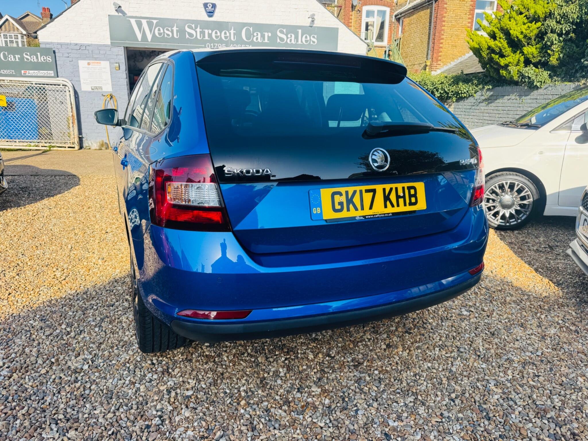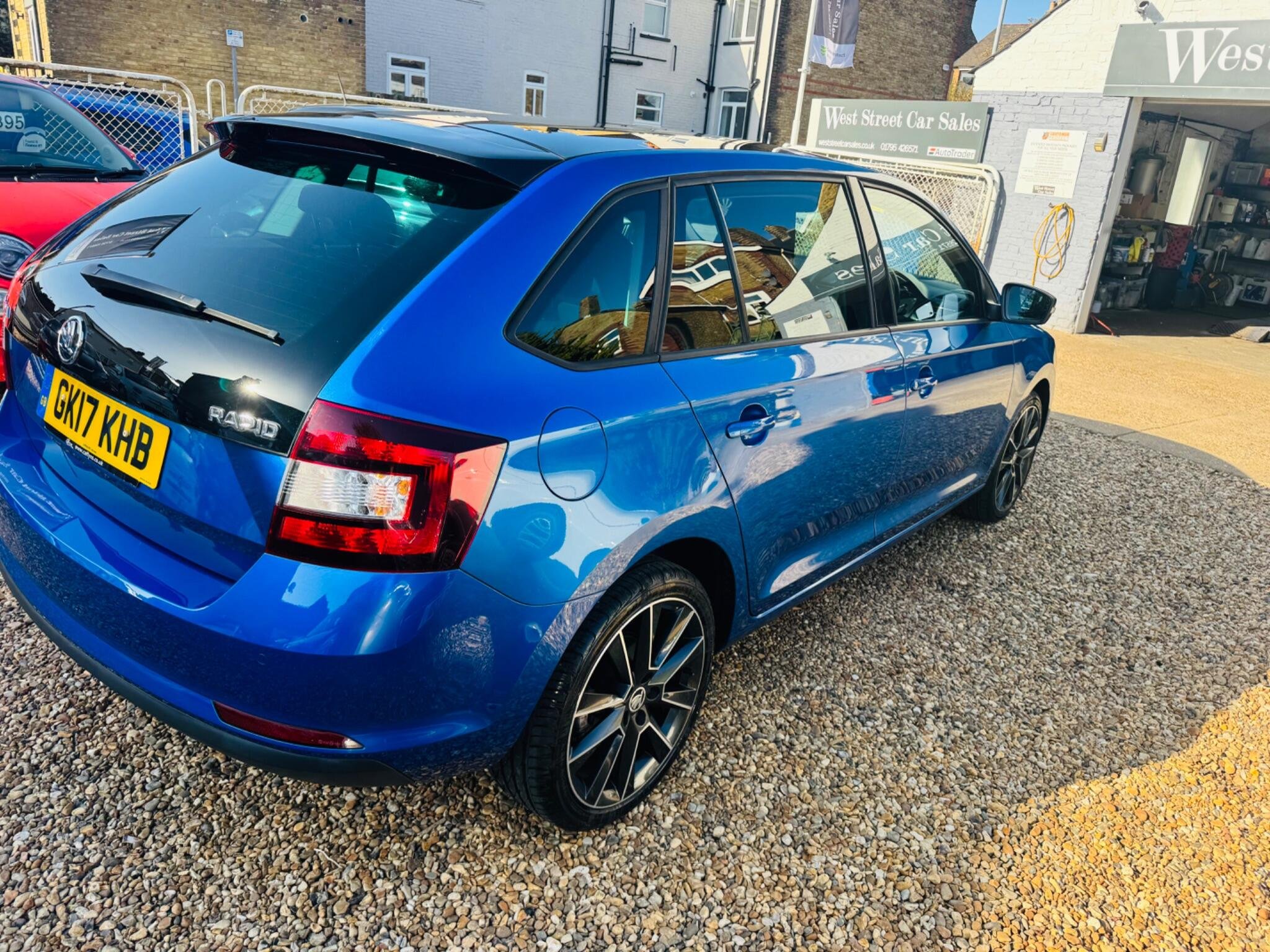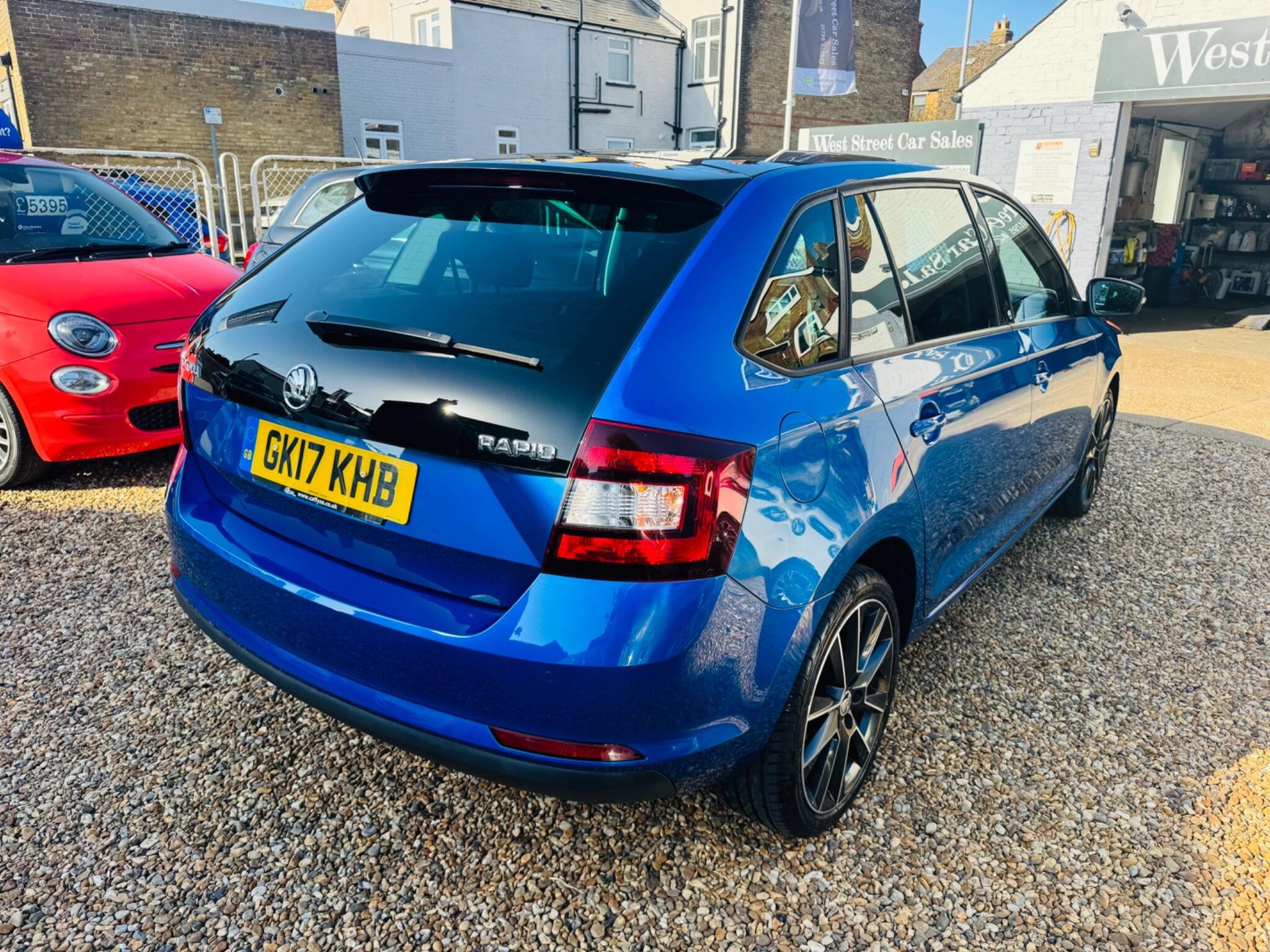 This 2017 Skoda Rapid Spaceback TDI SE Sport is a standout choice with exceptionally low mileage for its age, having covered just 19050 miles. This Euro 6 compliant 1.6 litre diesel model is London ULEZ free ,comes with a great service record including the timing belt replacement , 2 keys, £20 per year road tax, full panoramic roof with sun shade, presented in SE Sport trim, boasts a generous boot space perfect for all your needs. It comes equipped with stylish 17in Ray Black alloy wheels, practical LED daytime running lights, and a convenient Boot Package. For added comfort and ease, it features climate control air conditioning and rear parking sensors to assist with manoeuvring. With only two previous owners, this vehicle has been well cared for.