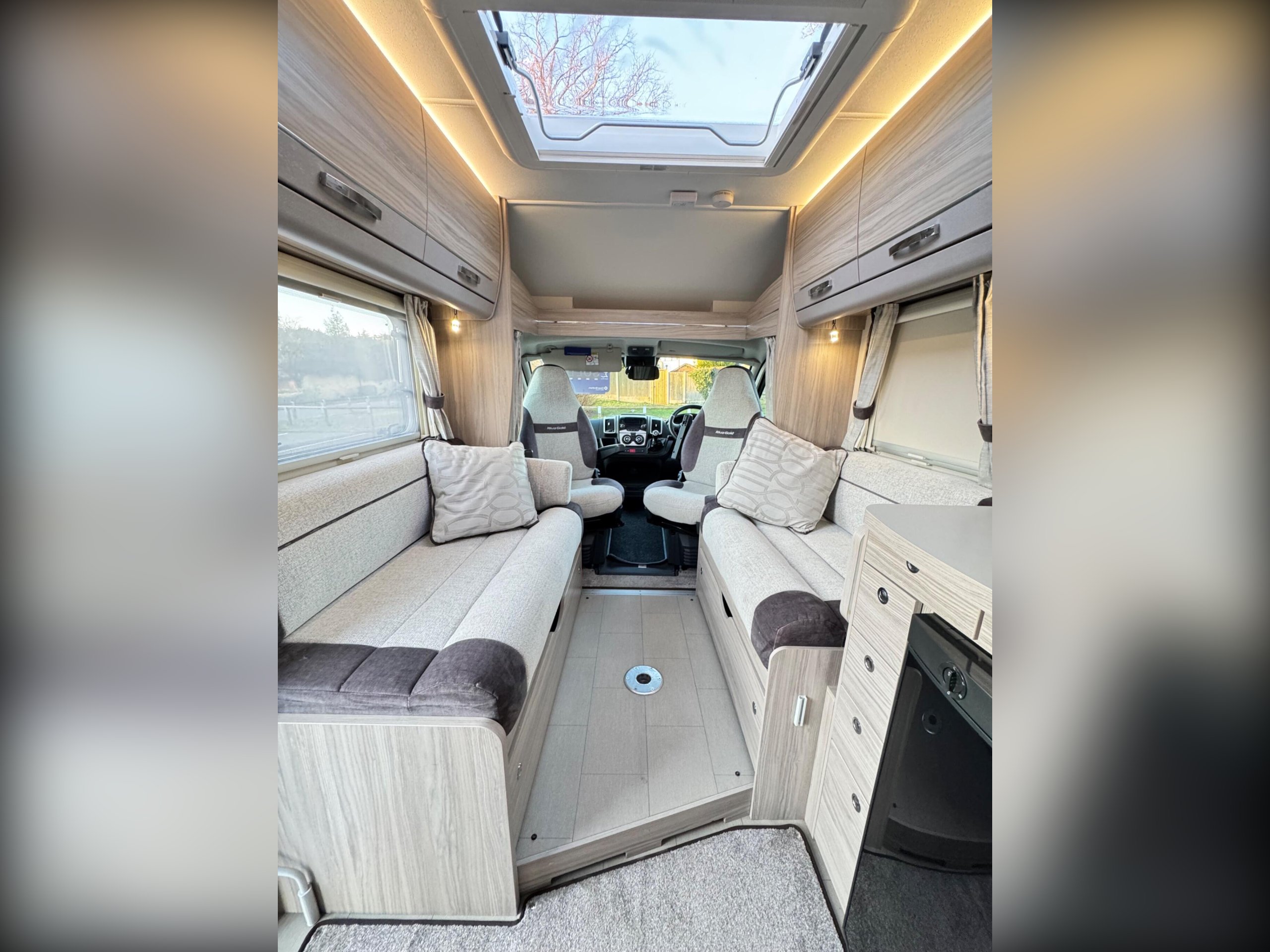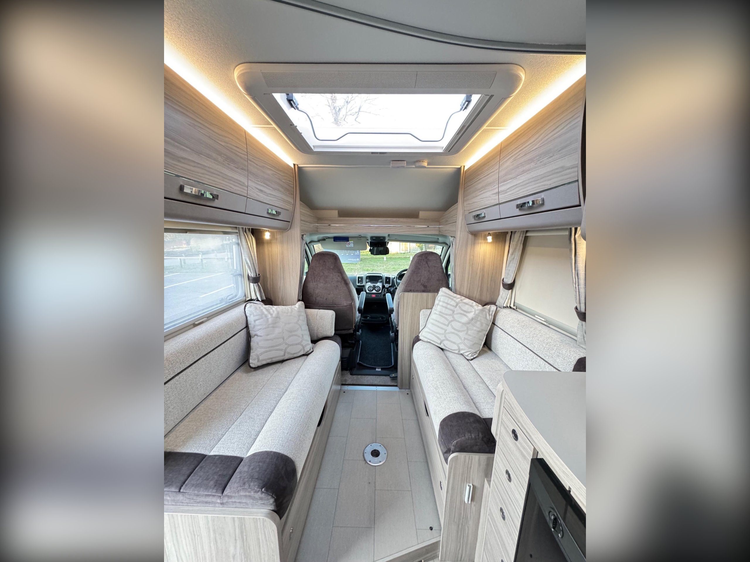 An opening roof light floods natural light into this area of the motorhome.