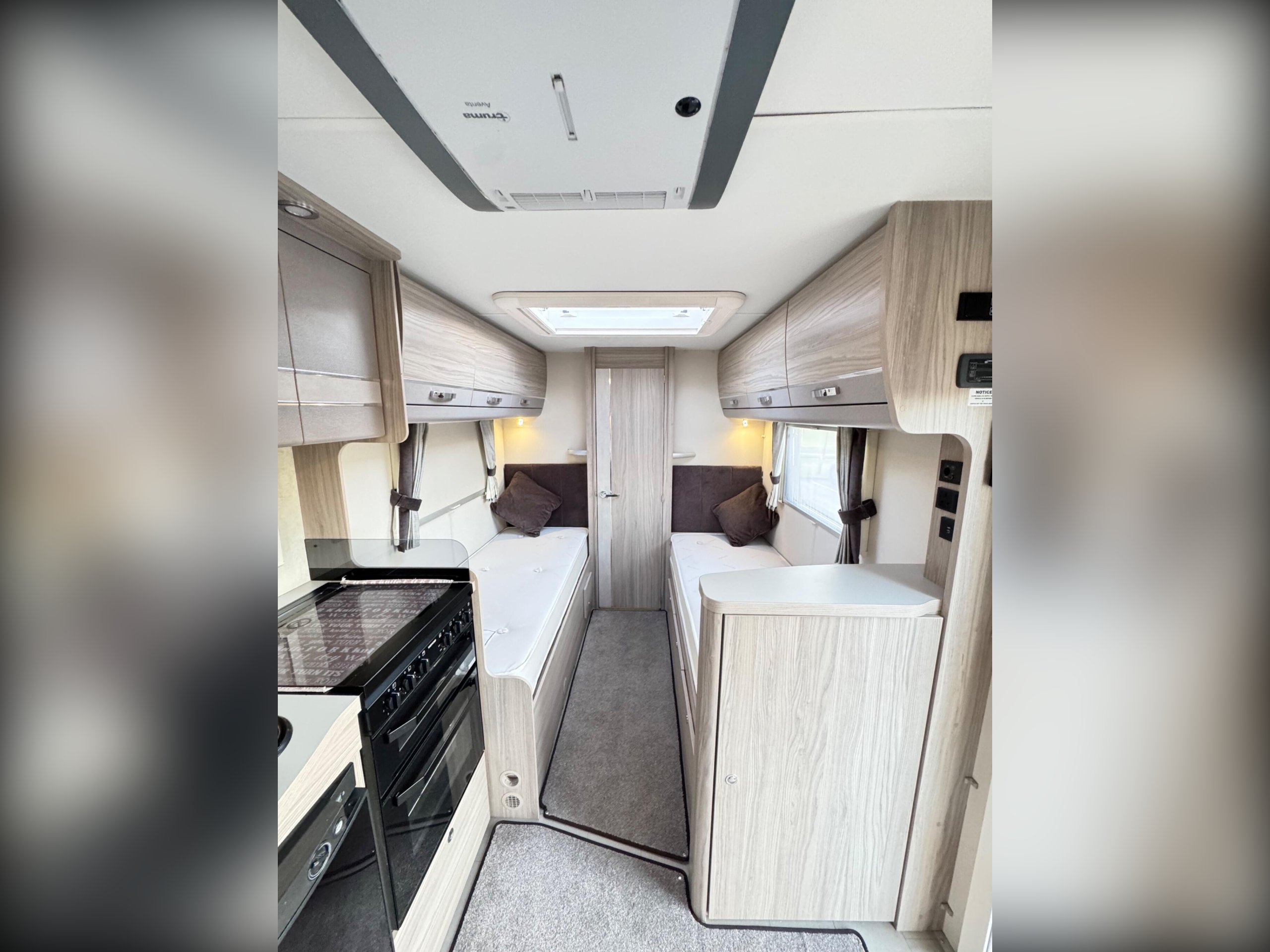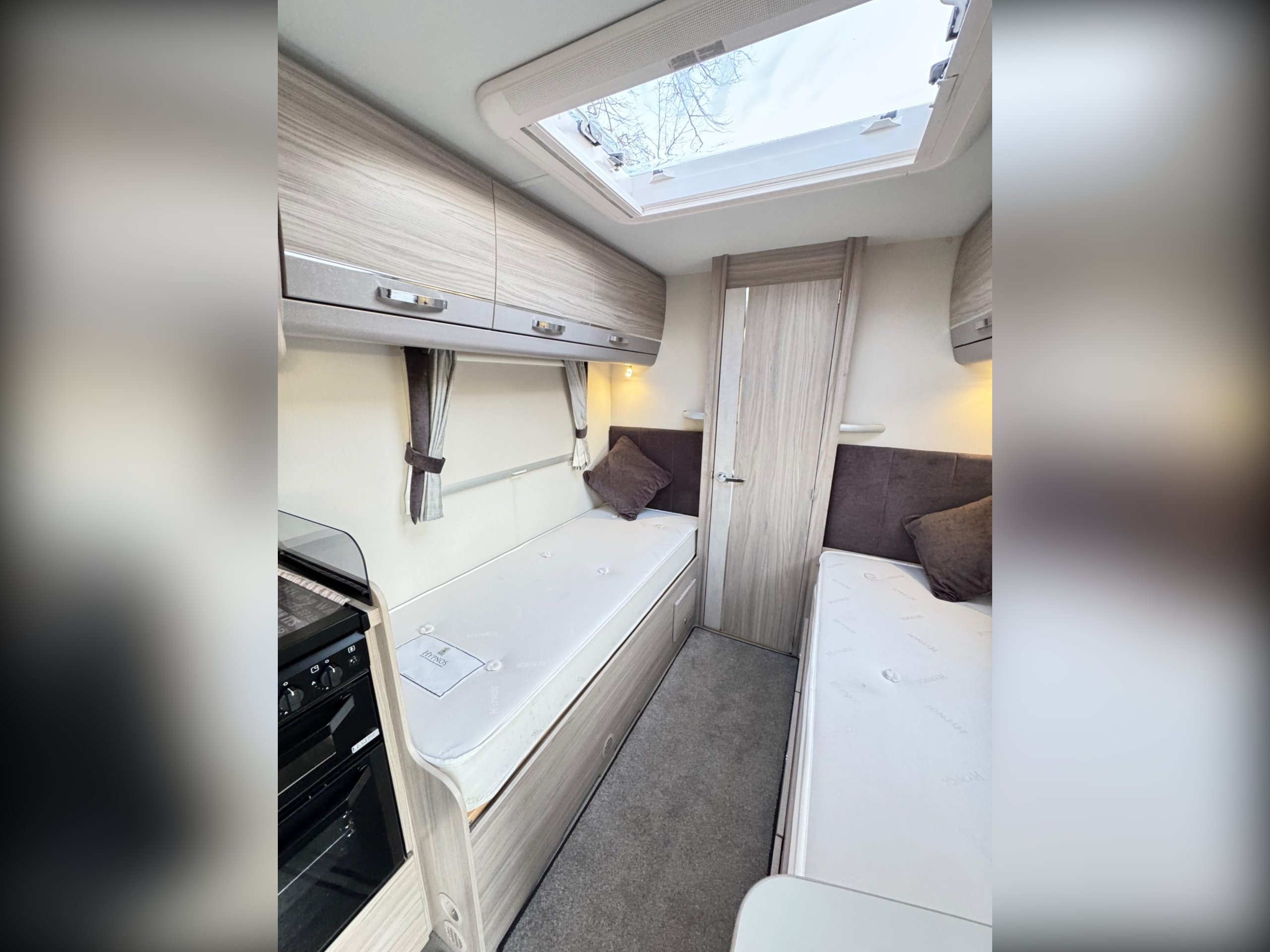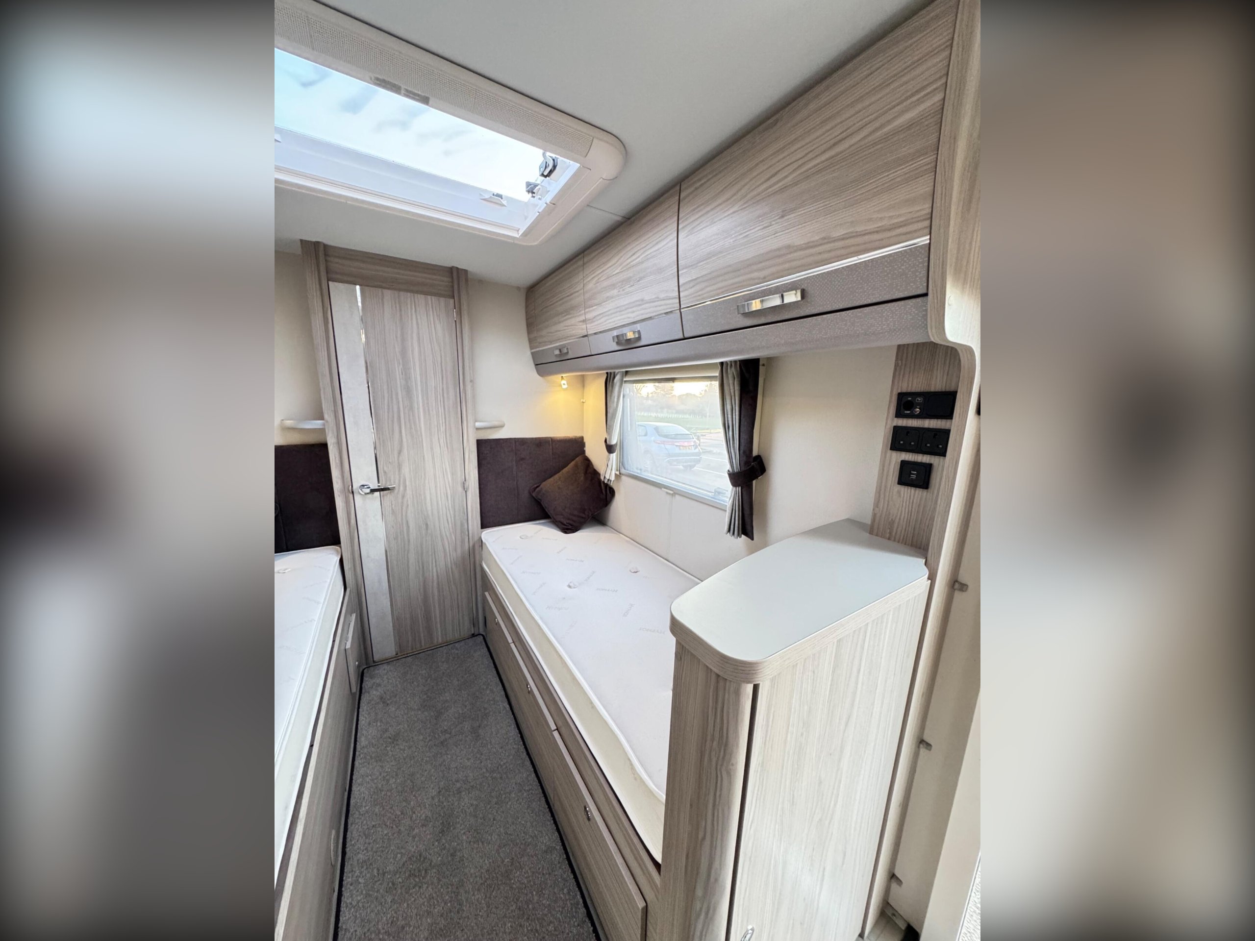 fixed single beds and luxury rear washroom.